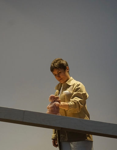 This shift in perspective also influenced how I shared the work with the audience. I yearned for an extended, unconventional time frame beyond the typical theatrical performance. A period of installation, with material activations. I found the idea of working with the transformation of the material fascinating - no longer against it, as when I struggled to mold with clay at the start of my new career as a teacher.